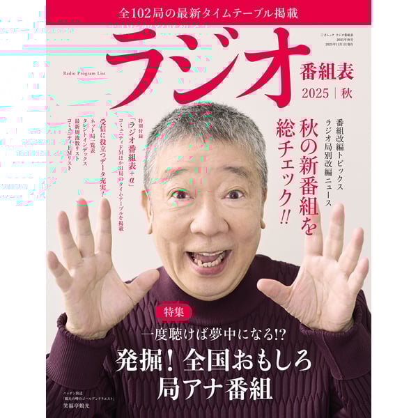 日本国内にあるAM・FM局・短波全105局の最新タイムテーブルを一挙に掲載! また、全国の県域ラジオ局の新番組をパーソナリティの写真付きで紹介。