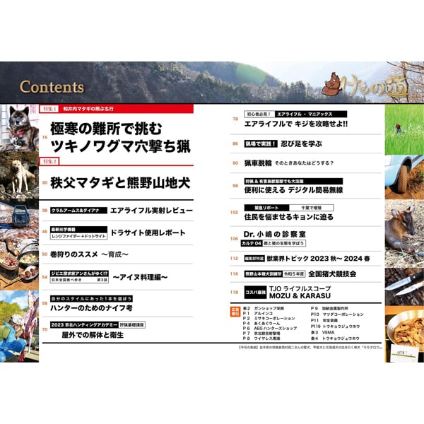 狩猟の道を切り開く、狩猟者による、狩猟者のための完全なる狩猟専門誌『けもの道』。狩猟の社会的意義に注目が集まる中、大物猟を中心に狩猟のロマン・醍醐味を真正面から紹介しています。