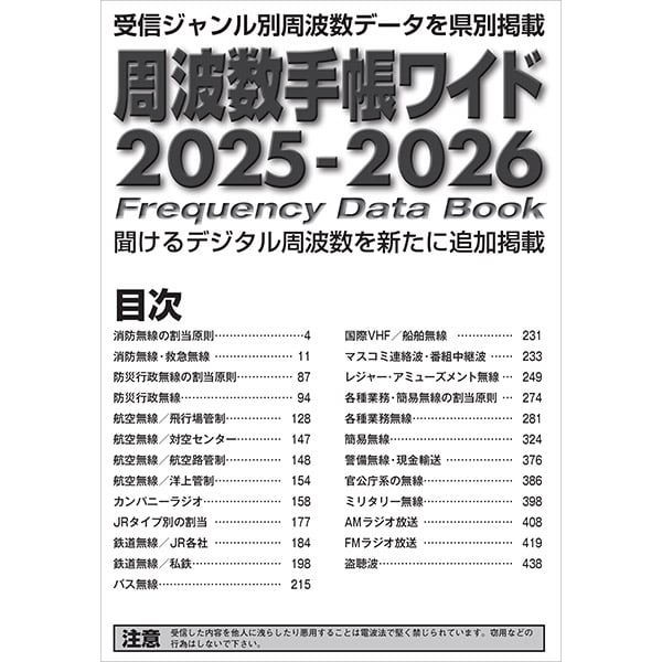 『周波数手帳ワイド』の最新版として『2025-2026』年版を発行します。