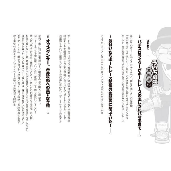 ボートレースのネット配信番組で活躍中の「ういち」。いかにしてパチスロライターからボートレース配信の道に移ったのか、なぜボートレースに惹かれたのか、美味しいところを狙い打ちする「ういち買い」誕生秘話など、これまでの歩みを振り返りながら、よりよきボートレースライフを送るための心得を指南。
