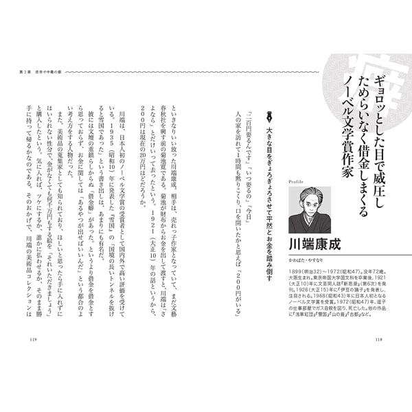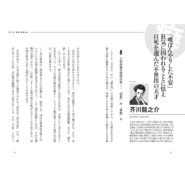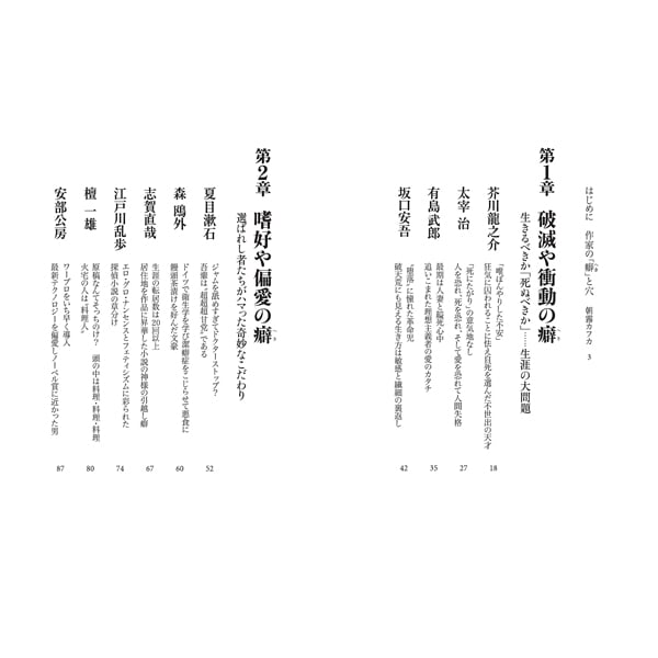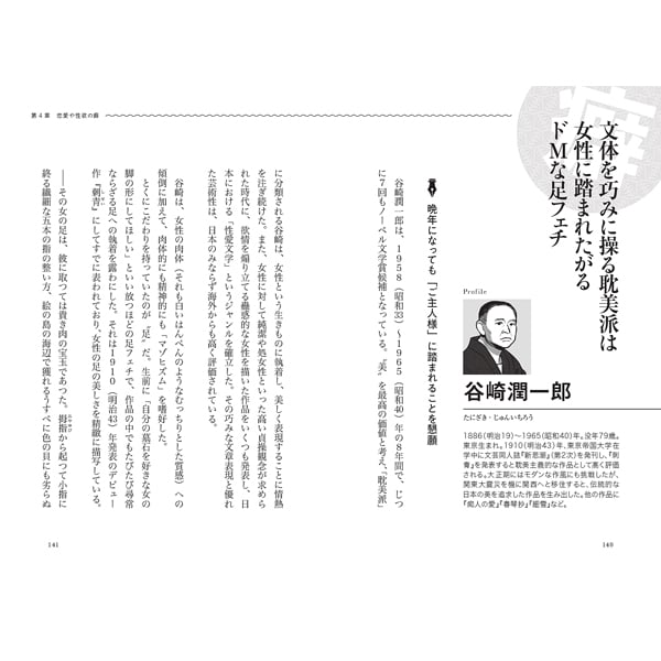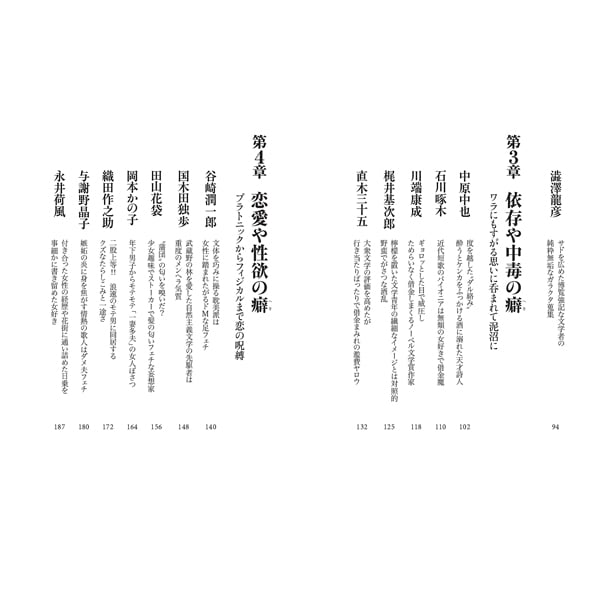 芥川龍之介や太宰治の目を疑うような破滅的な行動、夏目漱石や森鴎外の常軌を逸した食への偏執、川端康成や石川啄木の型破りな借金や金遣い、谷崎潤一郎や田山花袋の変態的な性癖など、総勢35人の文豪が憑りつかれた衝撃の嗜好・性向・こだわり・性分を徹底的に深掘りします。
